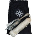 Dreggen leveres komplett med kause, og settet er pakket i en praktisk, marineblå nylonsekk med snøring.