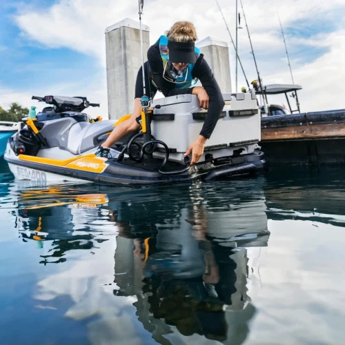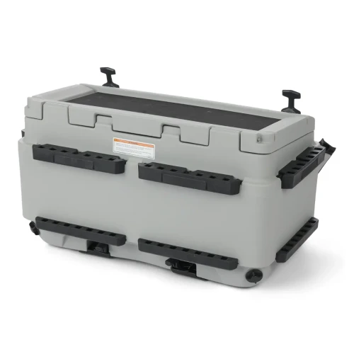 Praktiske detaljer som nedsenket arbeidsflate med antiskli-overflate og integrert fiskemål på toppen av lokket gjør denne kjøleboksen til en ideell følgesvenn for fisketurer. Kraftige låser er bygget for å tåle tøffe, maritime miljøer, og med LinQ-festesystemet går montering og demontering raskt og enkelt.