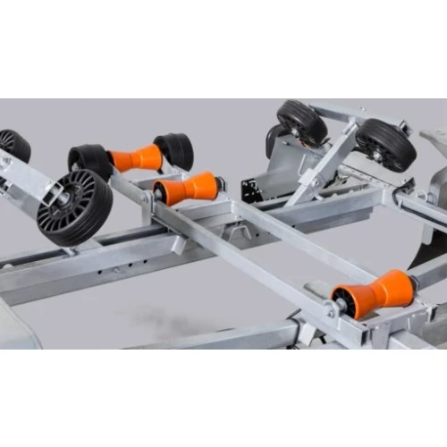 Skjermer og andre komponenter er I høykvalitetsstål med belegg i Magnelis®, som er 3 ganger mer motstandsdyktig mot korrosjon enn vanlig stål som brukes. Tippvoggen bakerst guider båten slik at den treffer mest mulig skånsomt og riktig når du vinsjer båten av og på. Kjølruller og justerbare sidestøtter hjelper båten til å ligge stødig og trygt på hengeren.