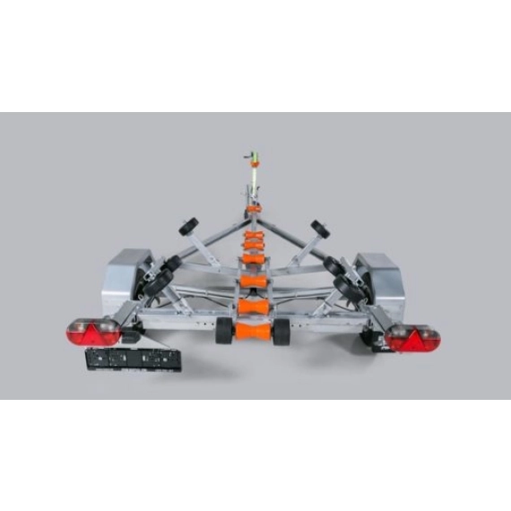 Kjølruller og justerbare sidestøtter hjelper båten til å ligge stødig og trygt på hengeren.