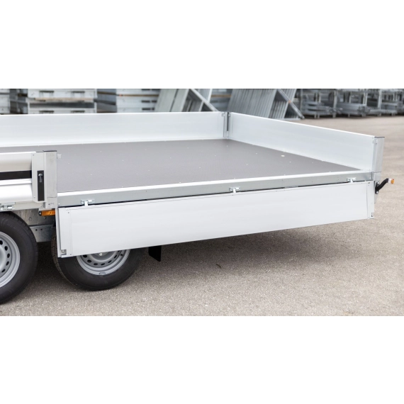 Med en ekstremt solid og holdbar varmgalvanisert (HDG) sveiset ramme og lette, men robuste aluminiumssider, samt front- og bakluker. Den doble torsjonsfjæringen gir enestående pålitelighet. I tillegg til vanntetting er bunnen dekket med et sklisikkert belegg. Sidene, front- og baklukene kan enkelt åpnes og fjernes, noe som gir praktisk lastemulighet fra alle sider.