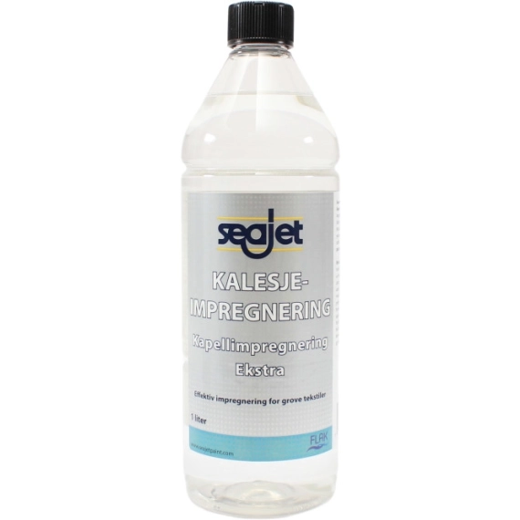 Seajet Kalesjeimpregnering er et silikonbasert impregneringsmiddel til tekstiler. Det gir bedre vannavvisning, og gjør det lettere å spyle fugleskitt bort fra kalesjen. Produktet fungerer godt til alle typer grove tekstiler som lavvoduk, ryggsekker, og markiser.
